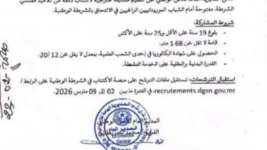 أعلنت الشرطة الوطنية اليوم عن اكتتاب بدفعة جديدة من المفتشين ، مشتركة أن يكون المرشح حاصلاً على الباكالوريا العلمية ،…