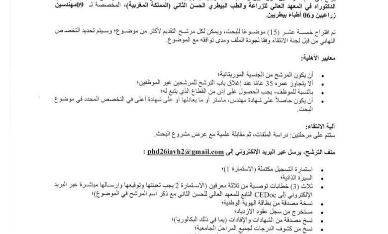 أعلنت وزارة التعليم العالي عن فتح باب الترشح لاستكمال متطلبات الدكتوراة بالممللكة المغربية ، للوقوف على الشروط ، الإعلان مرفق