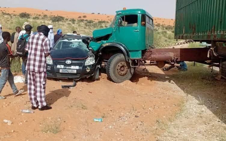 توفي شخصان في حادث سير قبل قليل على طريق الأمل ، الحادث ناجم عن اصطدام شاحنة كبيرة بسيارة صغيرة
