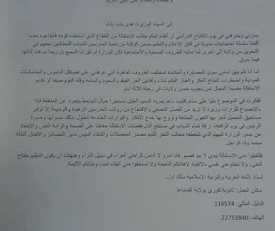 أستاذ يوجه رسالة استقالة لوزيرة التربية (نص الاستقالة)