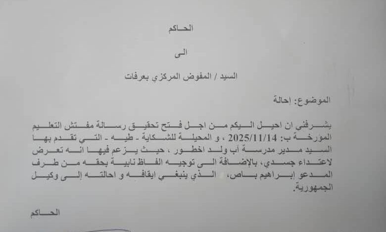 السلطات تأمر بفتح تحقيق بعد الاعتداء على مدير مدرسة بنواكشوط
