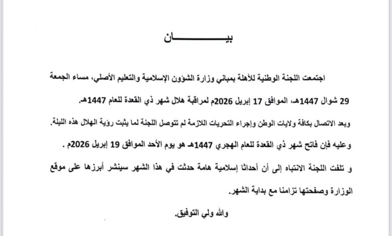 لجنة الأهلة الأحد فاتح شهر ذي القعدة
